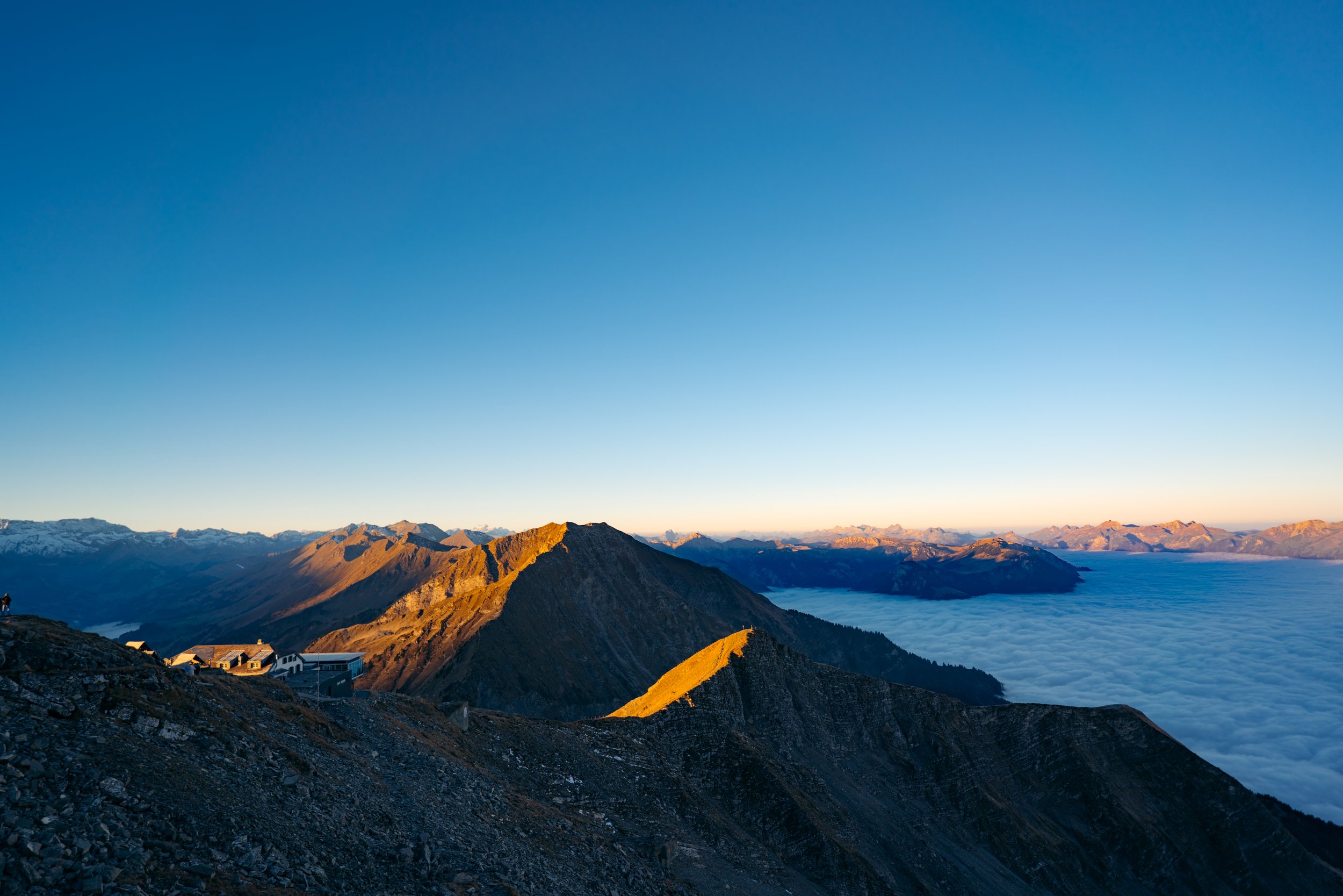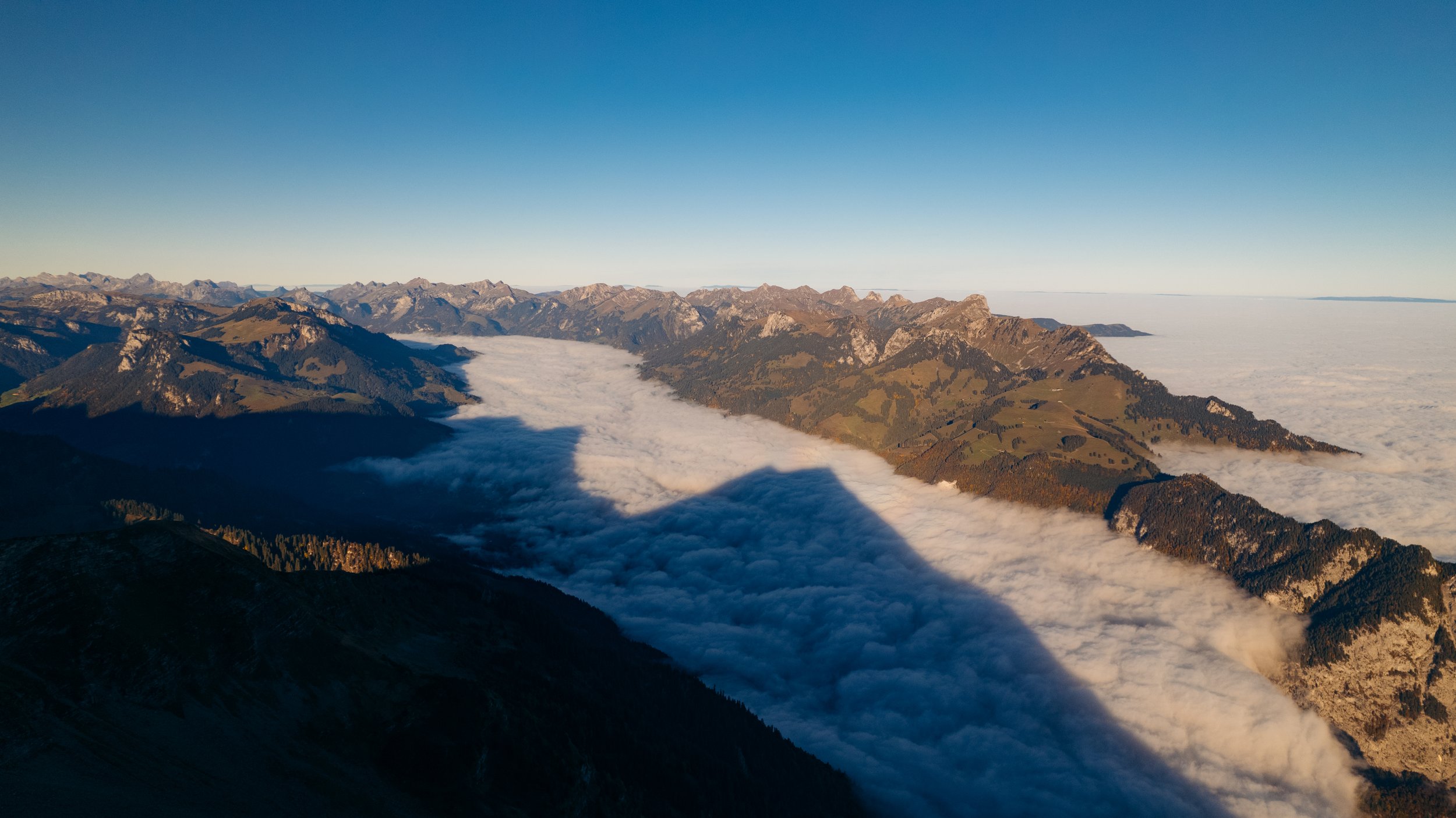 Niesen rises like a pyramid above the Bernese Oberland. In autumn this distinctive shape stands out even more with the famous Niesen shadow. At over 2300 meters high the mountain offers a spectacular backdrop throughout the year.